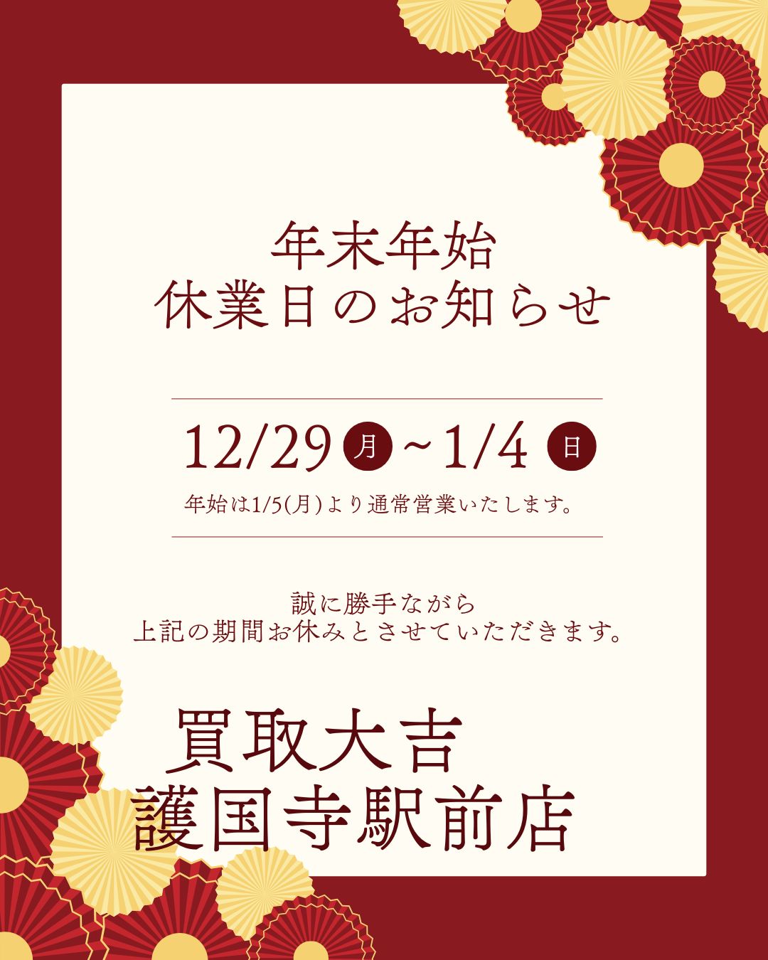 2025年12月29日(月)~2026年1月4日(日)